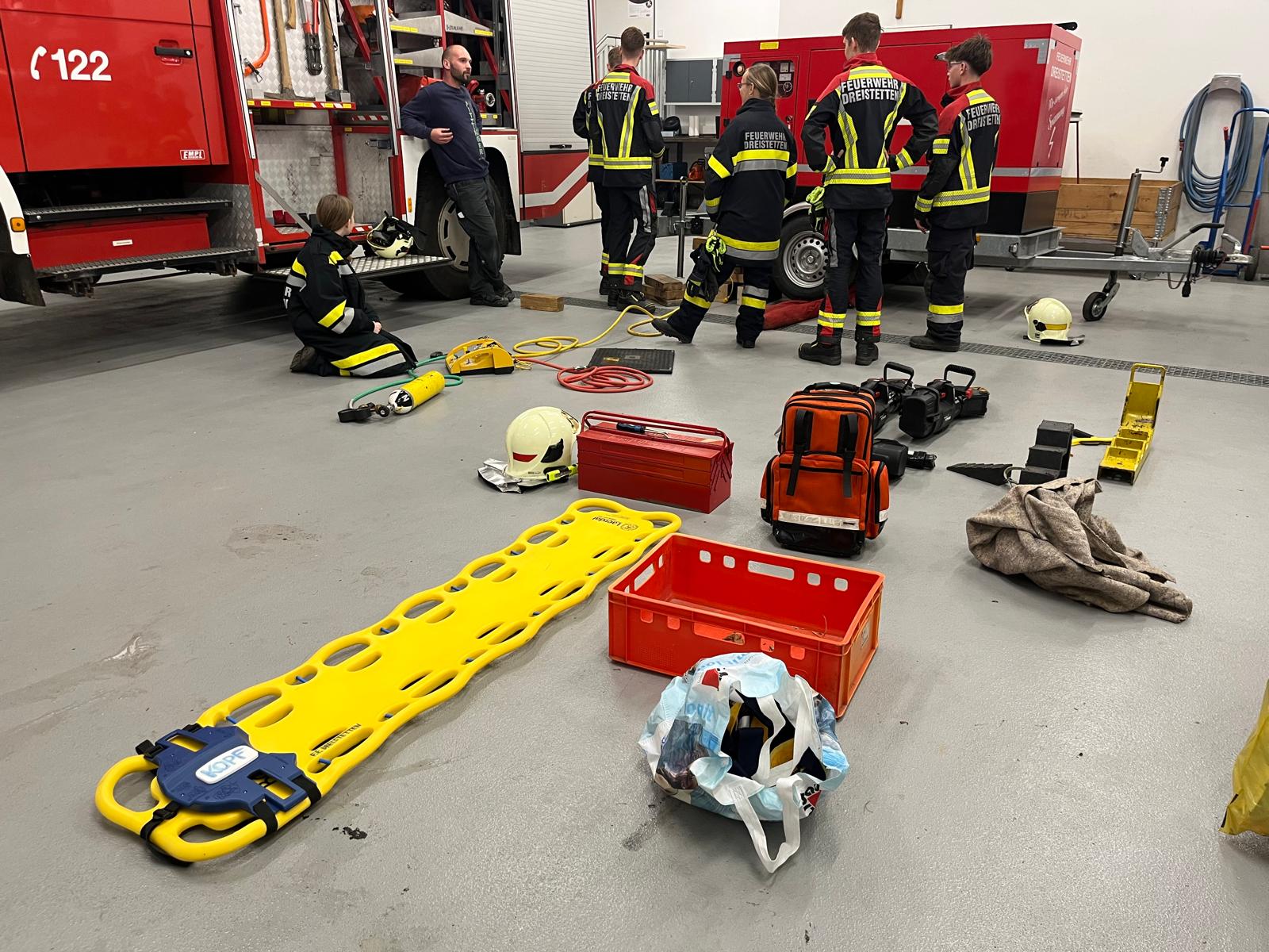 Da die geplante Gesamtübung leider wetterbedingt verschoben werden musste, nutzte die Feuerwehr Dreistetten den Abend spontan für eine Geräteschulung im Feuerwehrhaus.